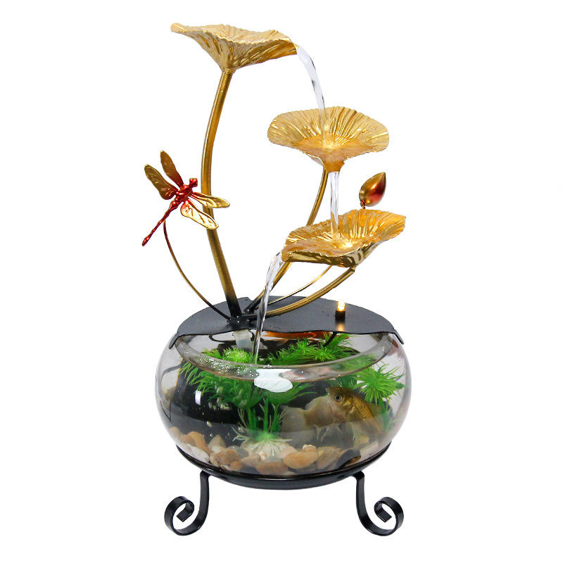 Small Desktop Water Feature Glass Fish Tank Ornament With Lights Modern Style Decor For Office Or Home Decoration