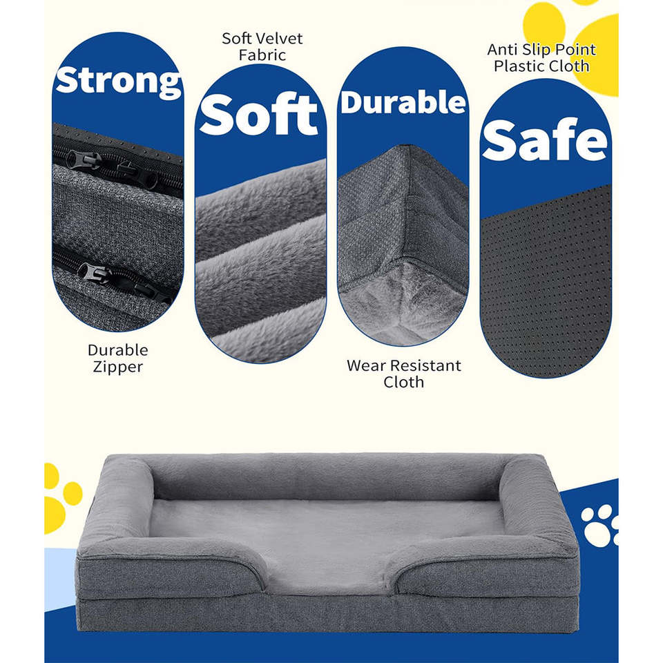 Small Dog Orthopedic Pet Cushion Sofa Egg-Crate Foam Waterproof Lining Bottom Washable Removable Cover Solid Eco-Friendly Design