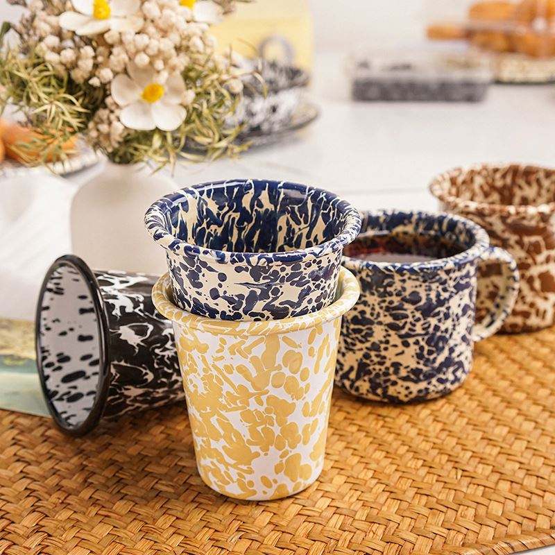 Small Espresso Cup with Tapered Enamel Handleless Toothbrush Mug