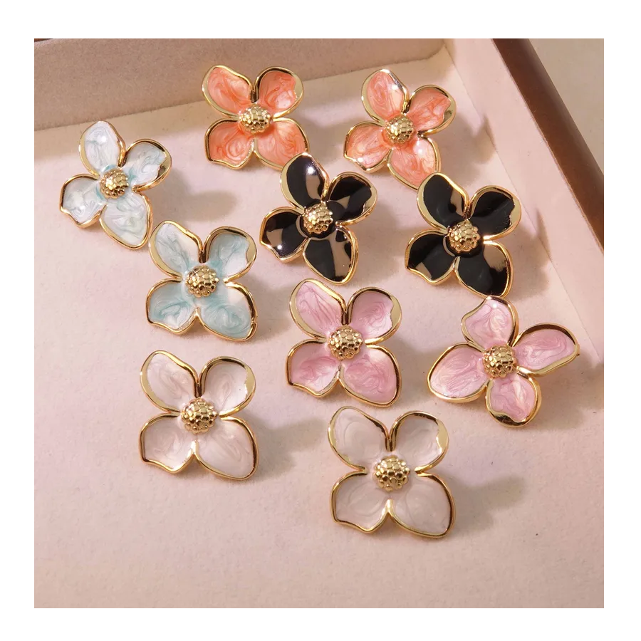 Small Fashion Stud Earrings 2025 New Romantic and Fashionable Stainless Steel Multi-color Enamel Petal Earrings