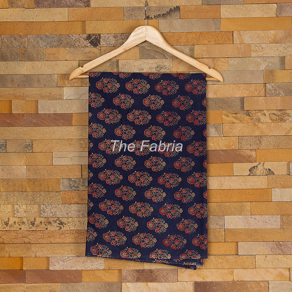 Small Floral Ajrakh Hand Block Printed Cotton Fabric for Dresses Suits Sarongs Scarves Home Decor Crafts Bags Curtains & Covers