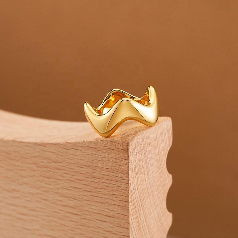 Small Geometric Wedding Ring Solid Brass Invisible Setting 14K Gold Plated Peace Shape Jewelry for Women Men