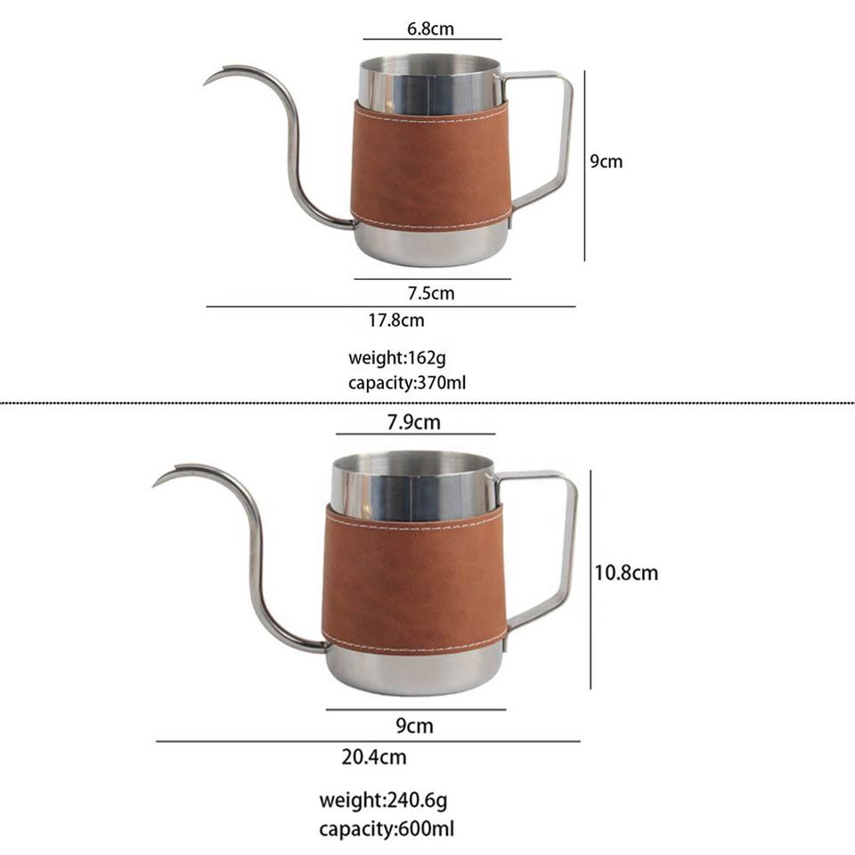 Small Gooseneck Coffee Pot Teapot with Leather Case, Hand Drip Pour Over Coffee Kettle