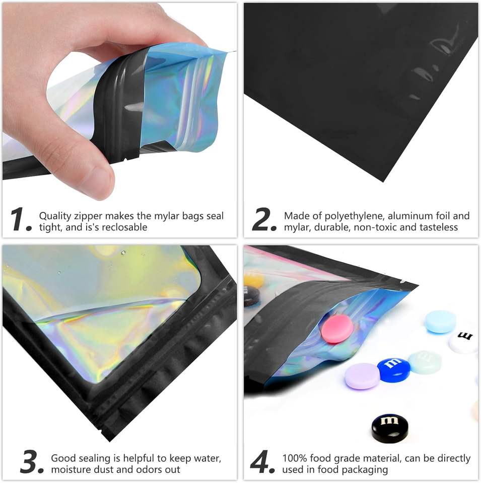 Small Holographic Zip Lock Plastic Foil Mylar Bags for Small Business Salad Packing with 100pcs Minimum Order