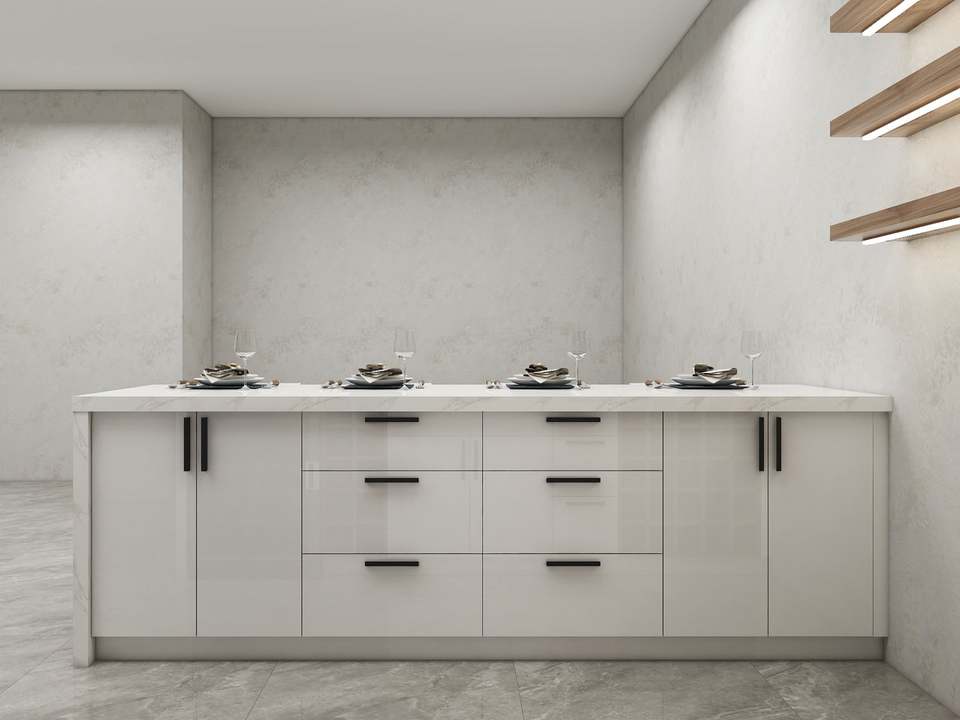Lacquered, White, Laminate, Black, High GlossCabinet Finish