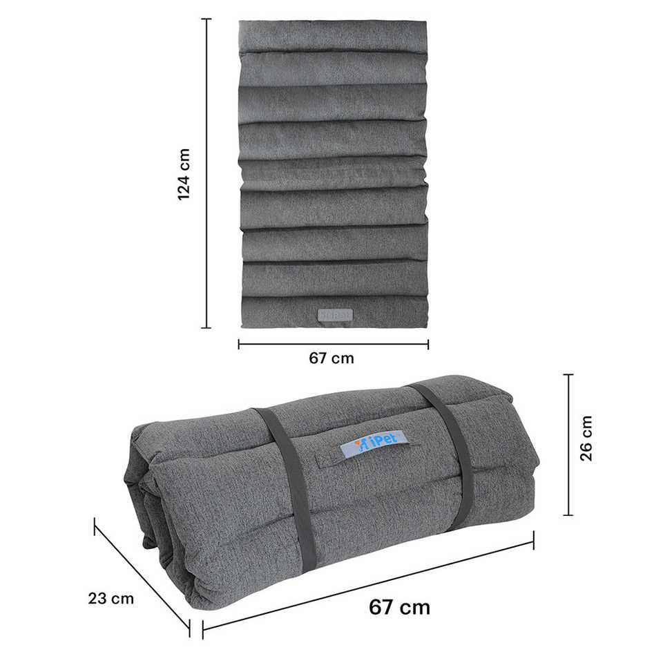 Small Large XL Roll-Up Dog Bed Mattress Striped Solid Pattern Removable Velvety Silk Bamboo Pet Tent Cute Style for Cats Cars