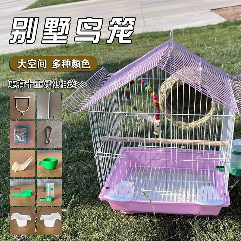 Small Luxury Bird Villa Tiger Skin Yellow Peach Peony Pearl Metal Iron Art for Birds and Cats Prosperous Encryption Bird Cage