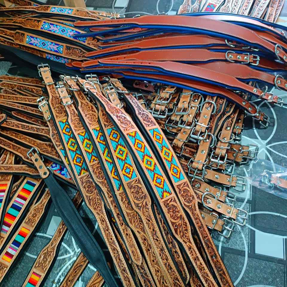 Small Medium Large Soft Padded Cow Leather Dog Collar Pet Collar With Hand Tooling & Carving Manufacturer Custom Made Design