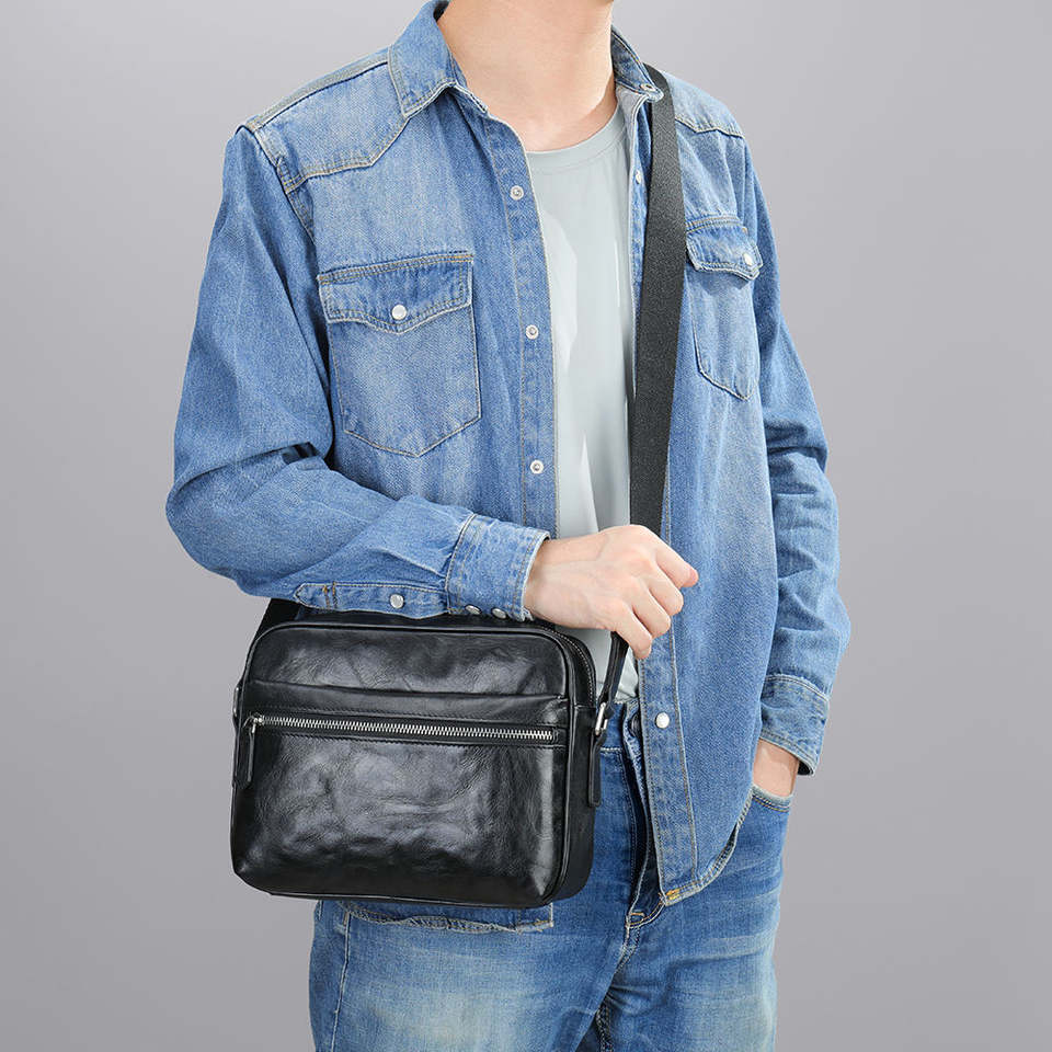 Small Men's Genuine Black Leather Crossbody Shoulder Bag Portable Messenger Pouch
