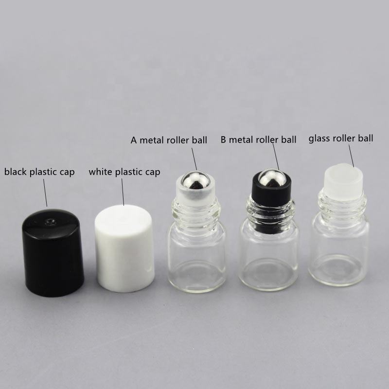 Small Mini Sample Bottles 1ml Clear Glass Essential Oil Perfume Vials Empty Roller Bottle With White Black Plastic Cap
