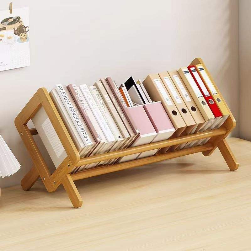 Small Modern Bamboo Office Organizer Storage Rack for Books & Papers Customizable Desk-side Holder Tray Shelf