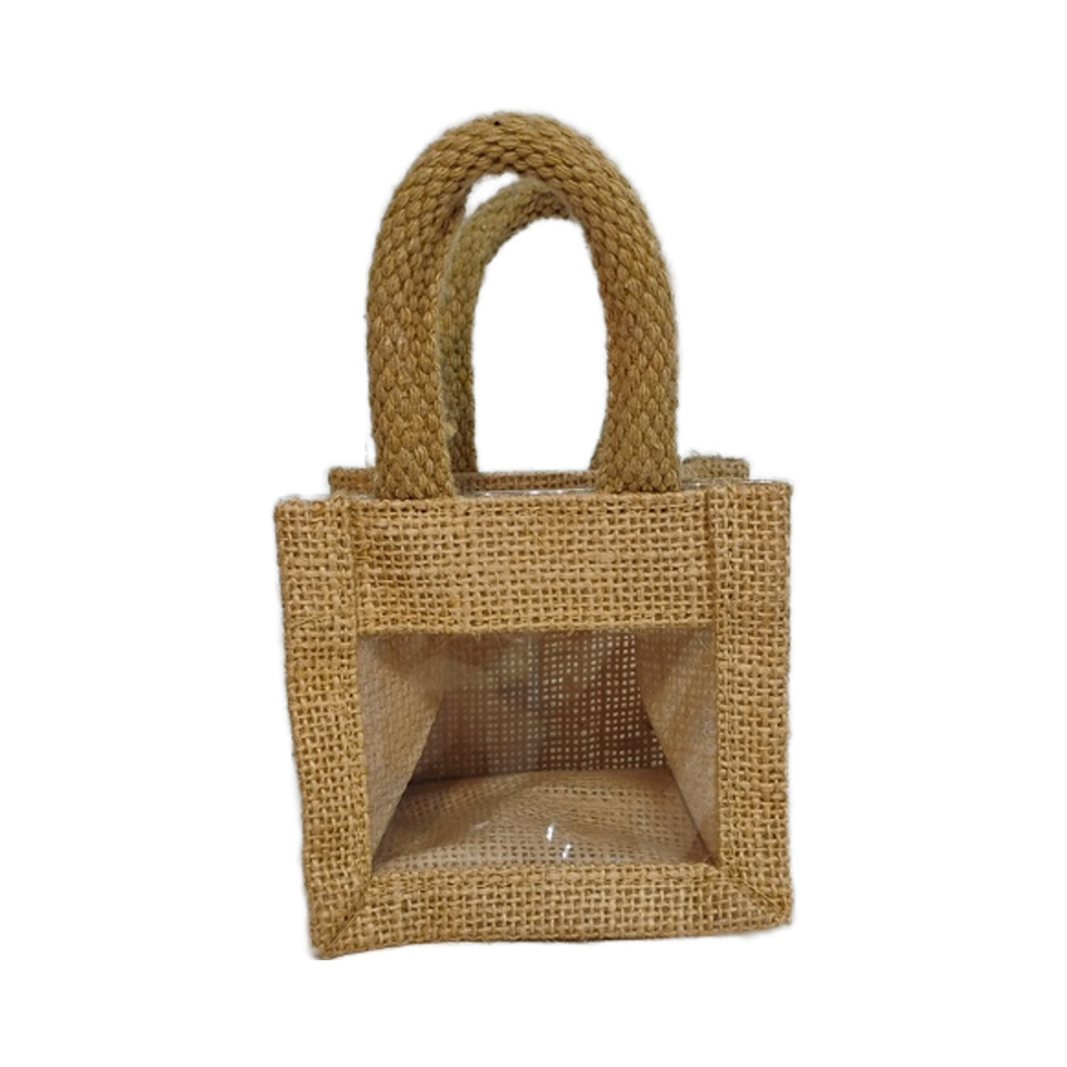 Small Natural Jute Eco-Friendly Fashion Gift Bag Cotton Web Handles | Reusable Packaging Tote | Mini Plain Indian Urban Tote
