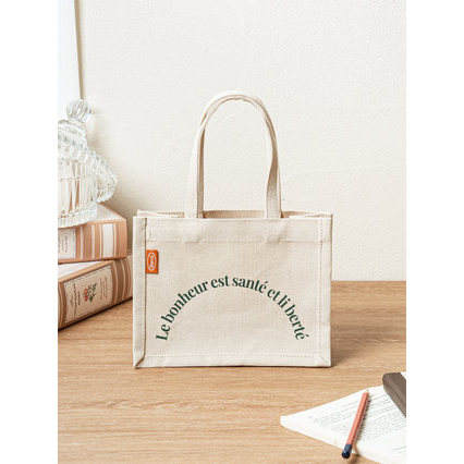 Small Natural Square Cotton Bag Recyclable Reusable Long Handle for Gift Use Features Custom Letter Heat Transfer Screen