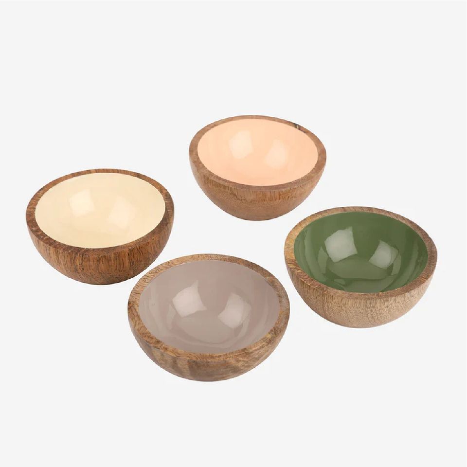 Small Natural Wood Snack Bowls with Food-Grade Enamel Coating Durable Wooden Condiment Nut Bowl Set Wholesale Rustic Tableware