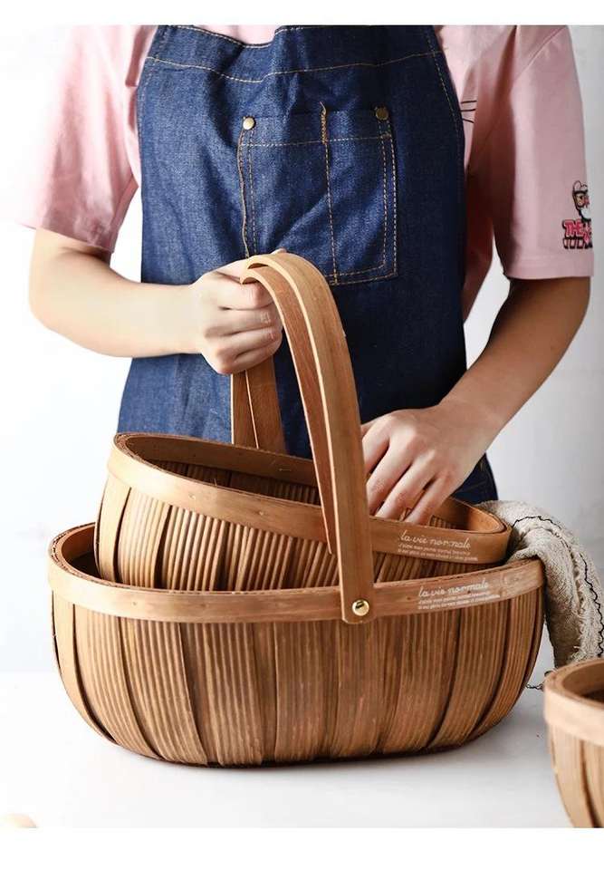 Small Oval Woodchip Woven Black Gift Storage Basket Wicker Material for Storage and Organization