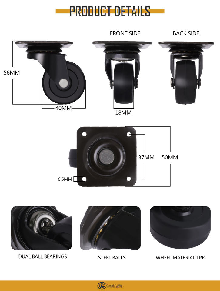 Product Name:CCE Caster 3 Inch PU Silent Bearings Furniture Wheels Caster