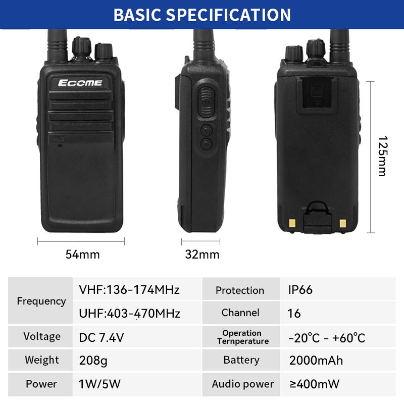 Small Portable Analog Walkie Talkie 3km Range IP54 Waterproof UHF Frequency 2000mAh Battery for Security Guards Retail Warehouse