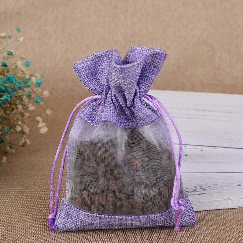 Small Recyclable & Biodegradable Jute Burlap Drawstring Pouch Bag with Window for Promotions & Gifts