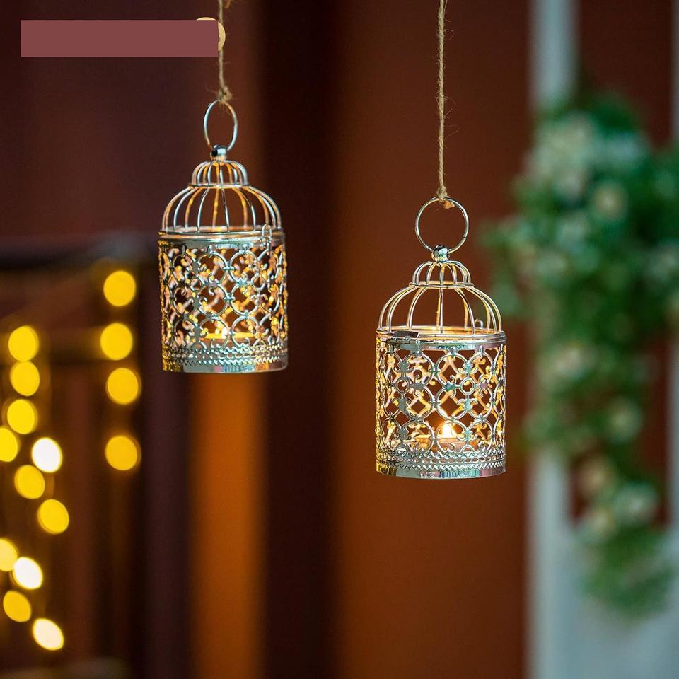 Small Set of 2 Candlestick Lantern Hanging Hollow Candle Holders For Table Valentine Outdoor Living Room Gifting Factory Direct