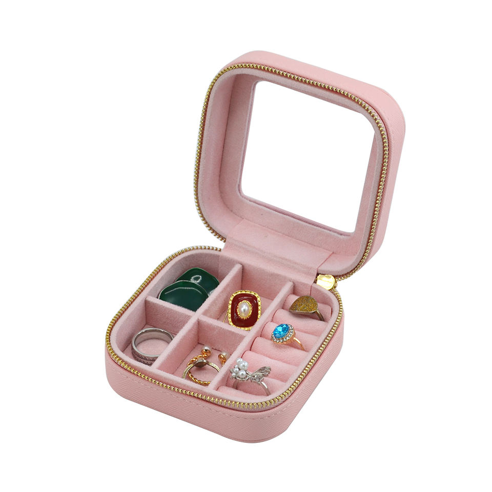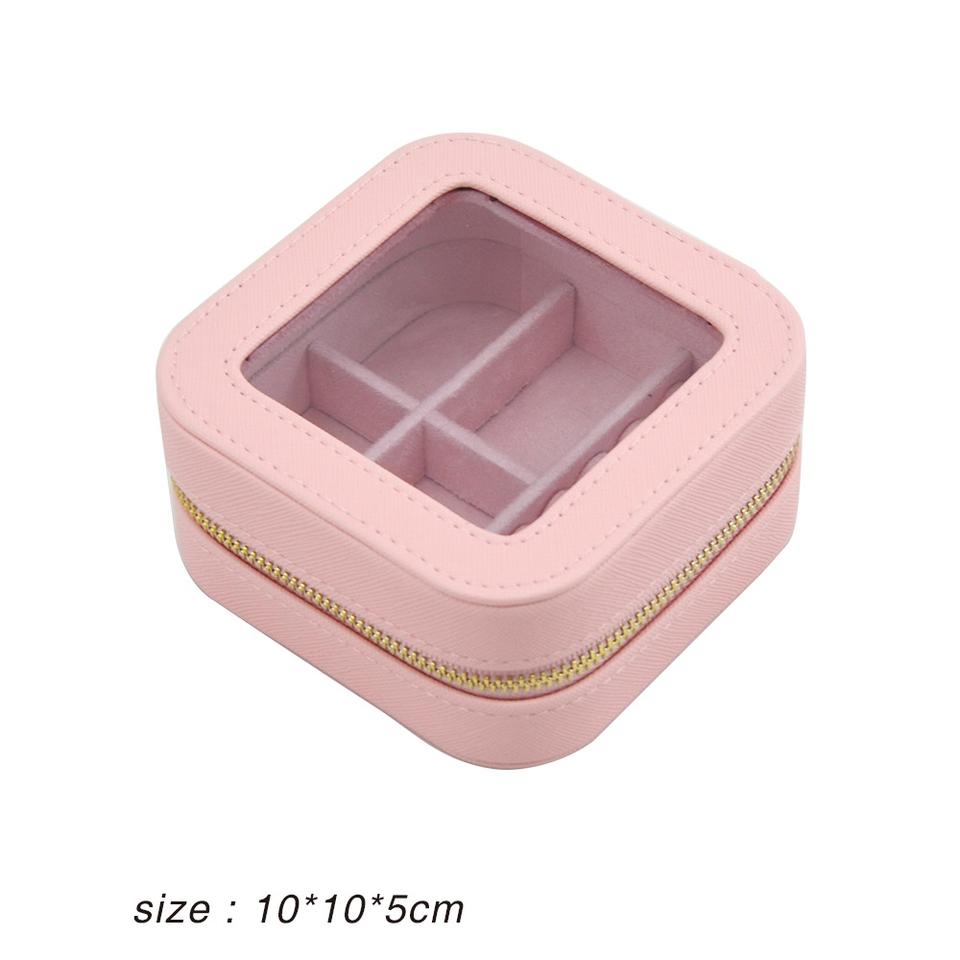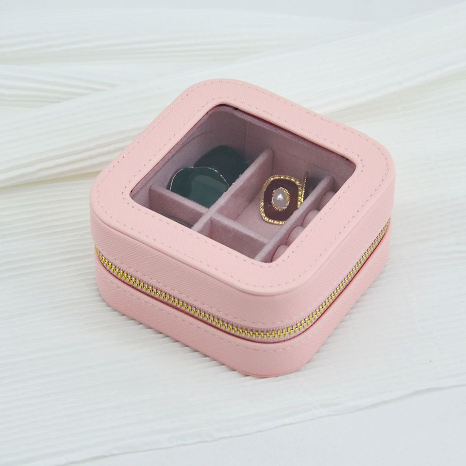 Small Simple Custom Logo Jewelry Case Travel Box Organizer Mini PU Leather Zipper Closure Portable Jewellery Storage