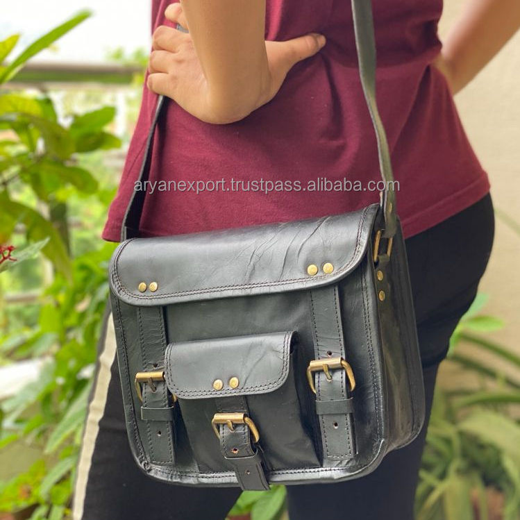 Small Size Black Leather Handmade Handbag Shoulder Bags