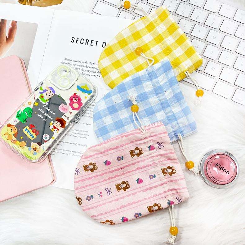 Small Size Colourful Cotton Canvas Drawstring Bag Recyclable Plaid Logo for Craft Dust Storage Gift Purpose GOTS Certified
