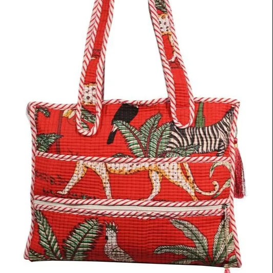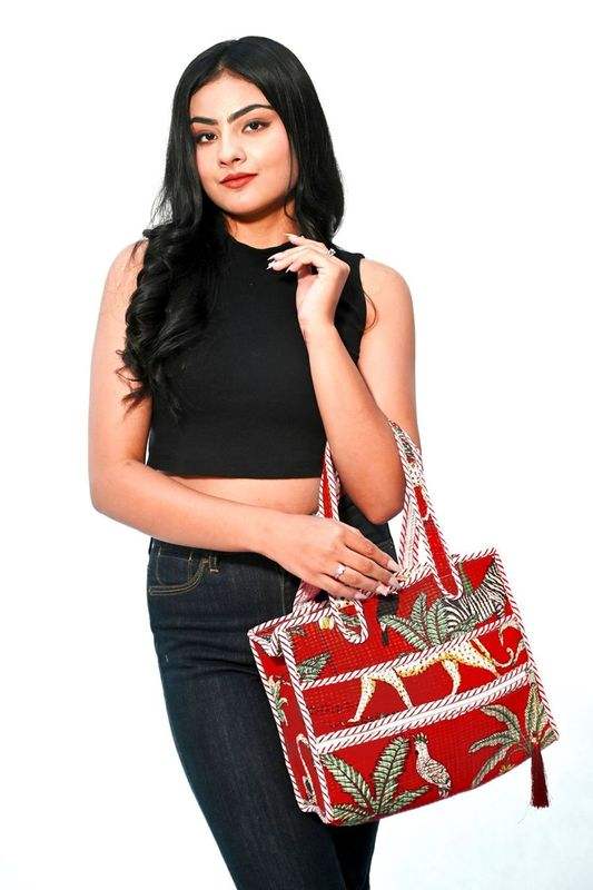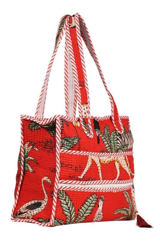 Small Size Printed Block Print Tote Bag with Border Red Handmade Premium Quality Classical Design In Wholesale Price For Women