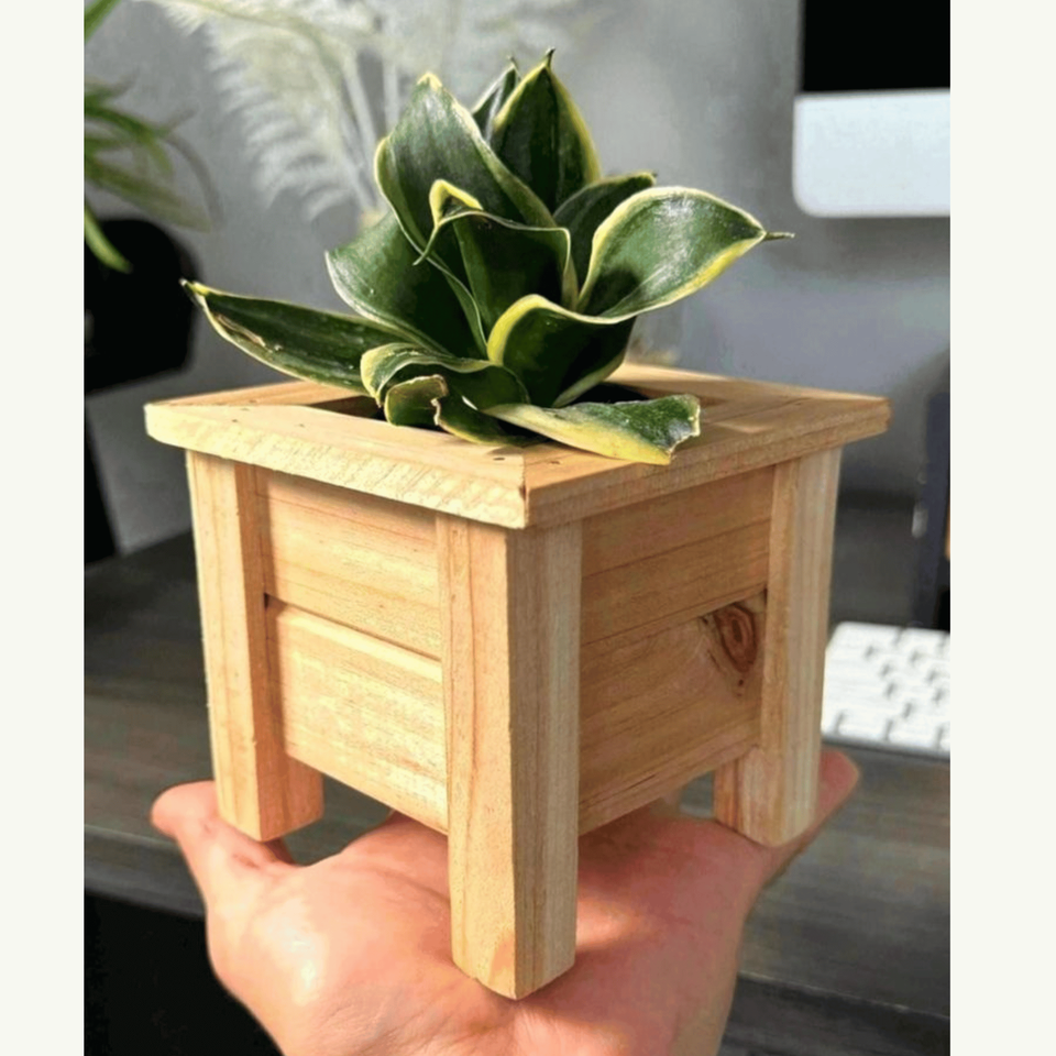 Small Square Acacia Wood Plant Pot Home Decor Outdoor Planter for Garden Handmade in Vietnam