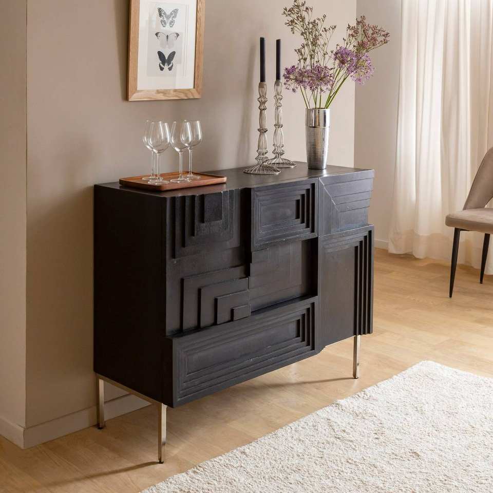 Small black mango wood sideboard Tristan