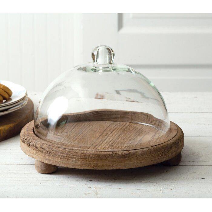 Small clear glass dome with wooden bowl base rustic dessert display for fruits snacks kitchen table new style stand base feeted