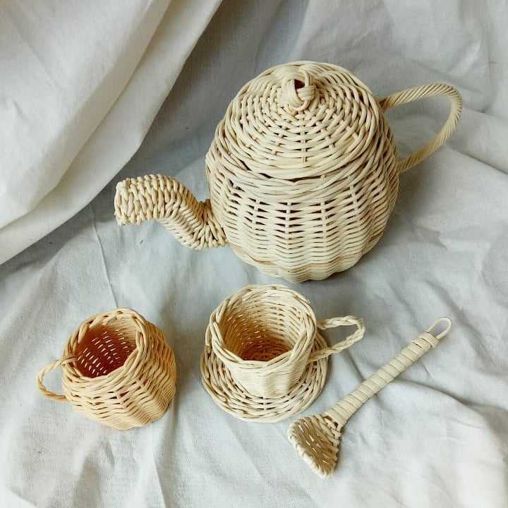 Small Handbraided Rattan Teapot Set Best Selling Children Gifts Kitchen Pretend Play Toys Mini Tea Pot Set for Kids