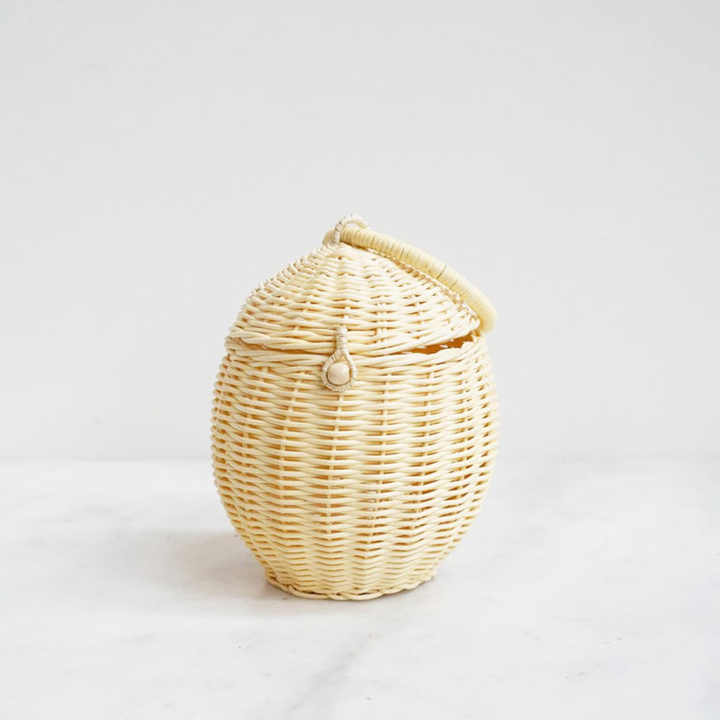 Egg shape rattan kids bag basket lovely small clutch hand bags best price natural handbags for children