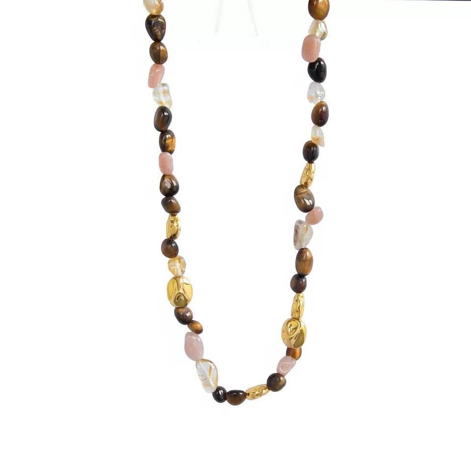 Small scale designed irregular natural tiger's eye stone beaded necklace A new product for women featuring a niche