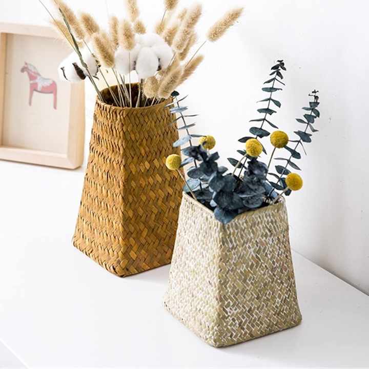 Small seagrass vases cheap cost sea grass flower vase raffia vase for tabletop shelf accent