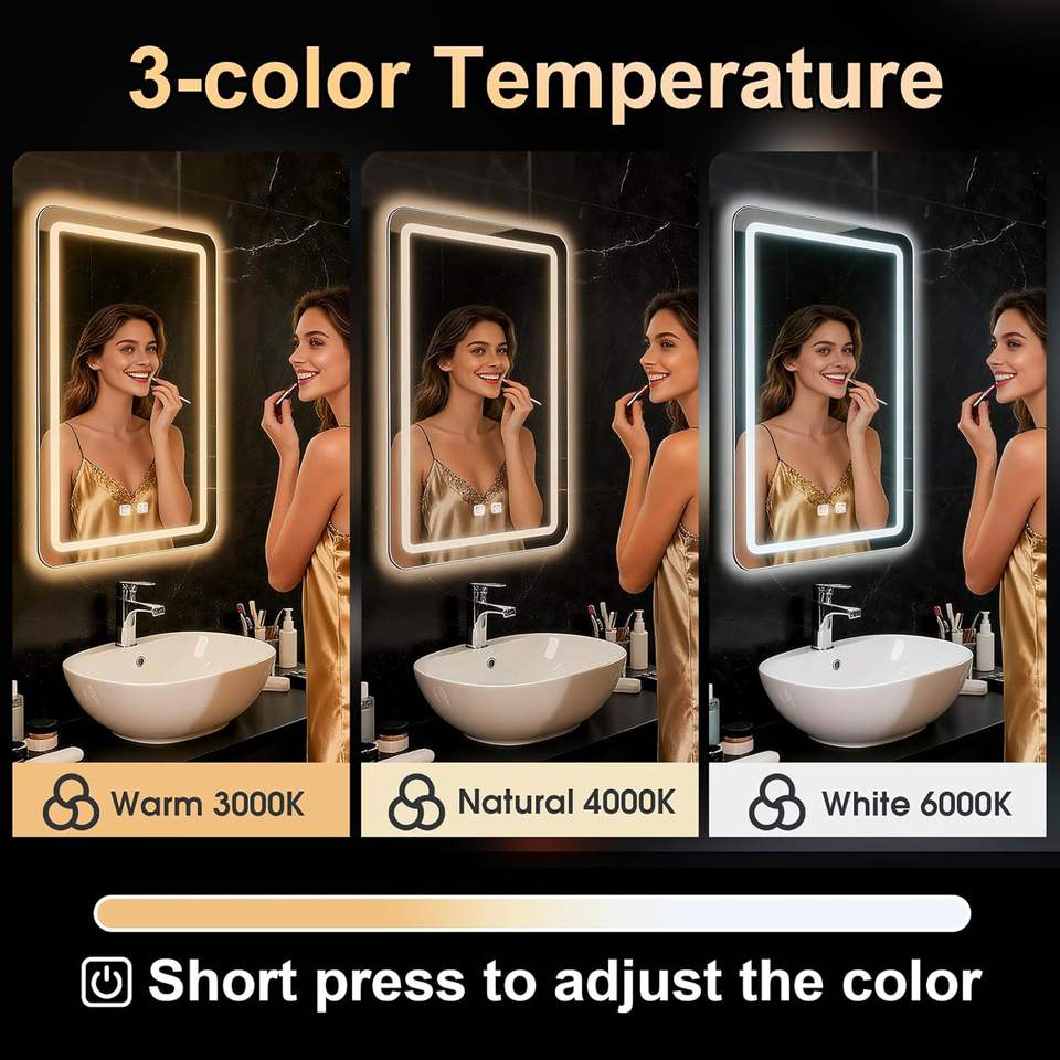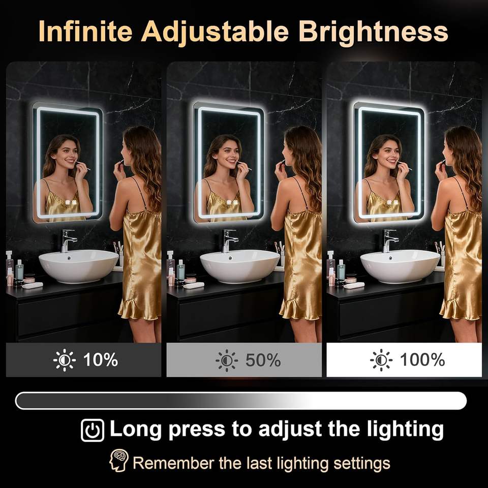 Smart Anti-Fog LED Luminous Makeup Mirror Simple Square Design Touch Screen Cross-Border Bathroom Mirror for Bath Toilet Supply