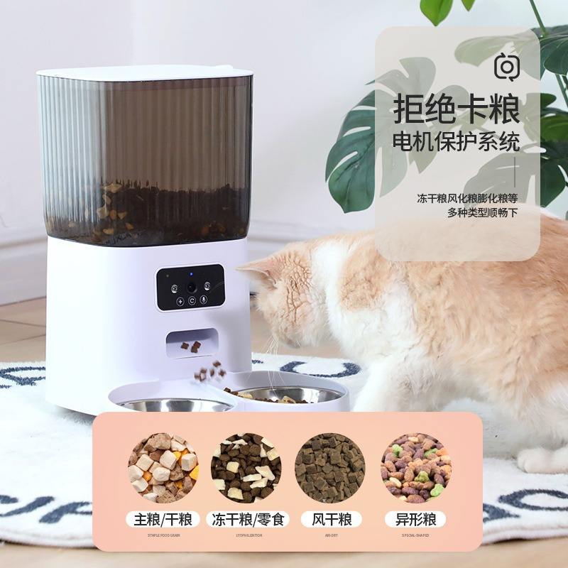 Smart Automatic Pet Feeder With Visual Display For Cats Rounded Design Detachable Bowl European Plug 1.25kg Weight