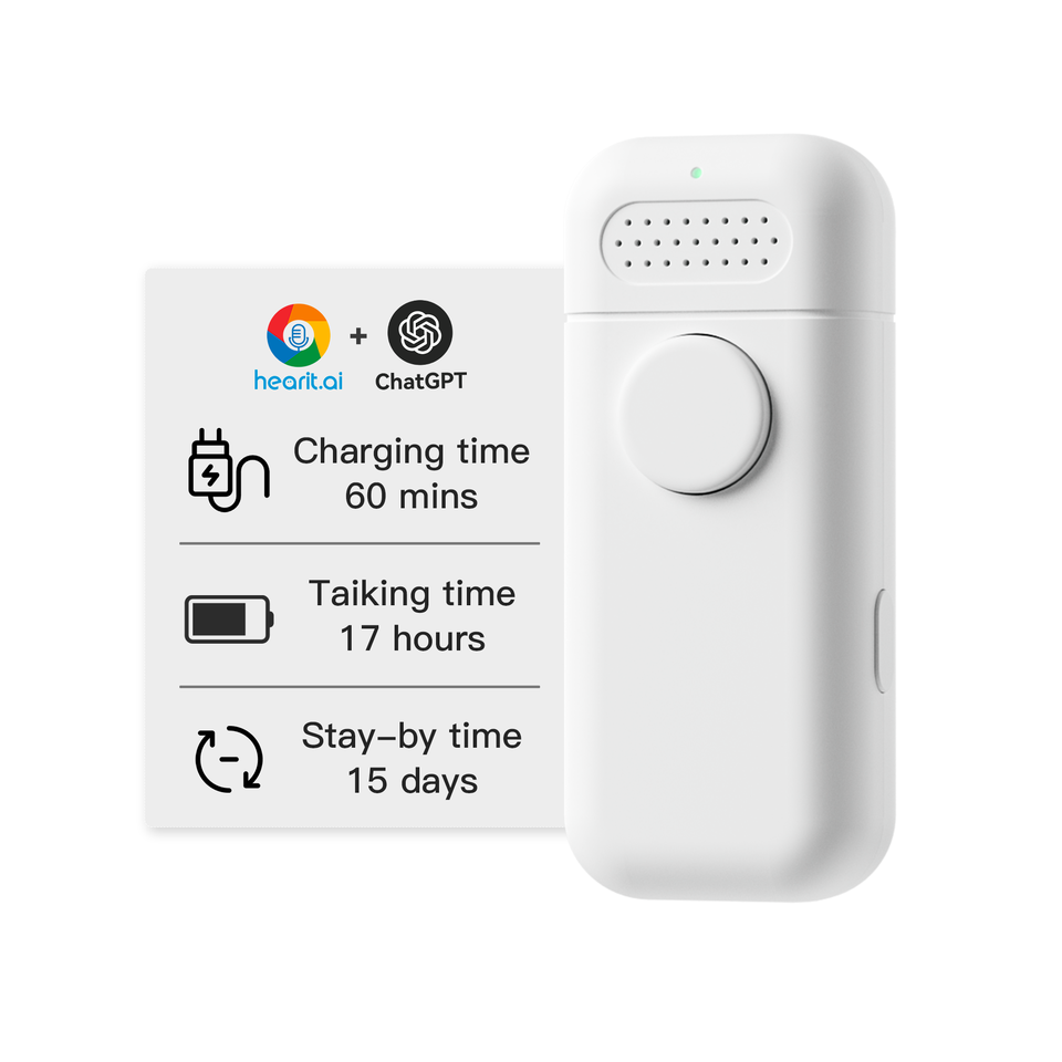 Smart Wireless BLE AI ChatGPT Voice Recorder & Assistant Headset Microphone with WiFi and Light-weight Design