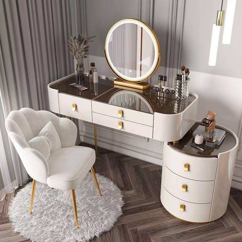 Smart Bedroom Furniture Modern Simple Multi-functional Princess Dressing Makeup Table With Side Cabinet Vanity Smart Mirror