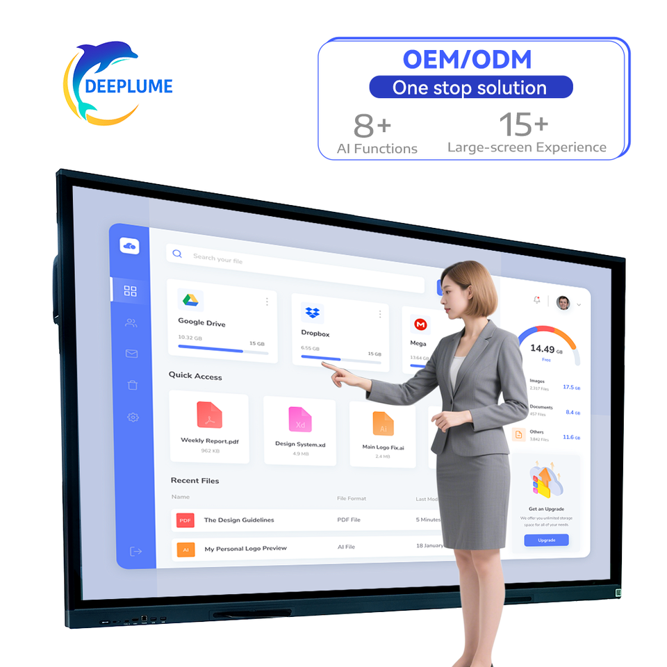 75" Ultra Thin Slim 91mm Interactive Whiteboard 4K UHD IR Education Classroom White Board Smart Digital Write All in One PC