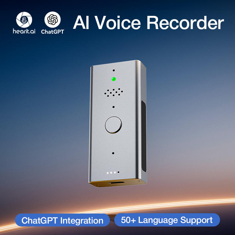 Hearit.ai Smart Business AI Agent System BLE ChatGPT Translator OEM ODM ASR Voice Recorder 52+ Language Mini Device ABS Material