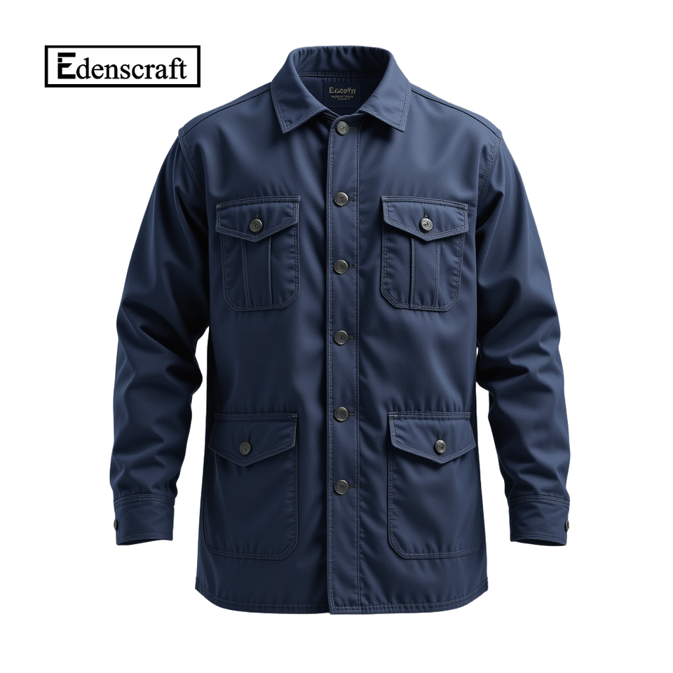 Smart Casual Blue Plus Size Men Waterproof 100% Cotton Utility Field Shirt Jacket Made Bangladesh Premium Outerwear Modern