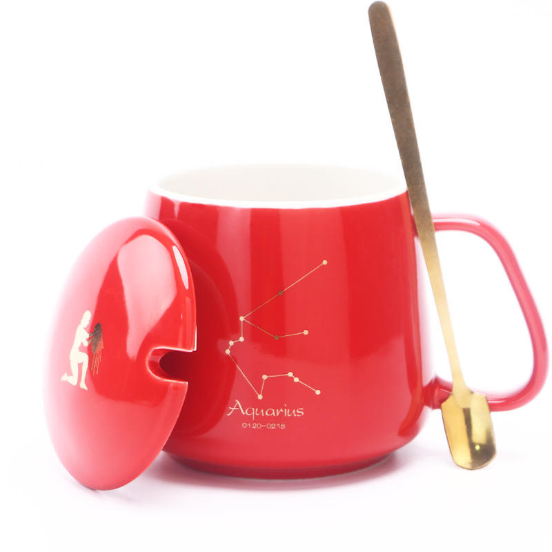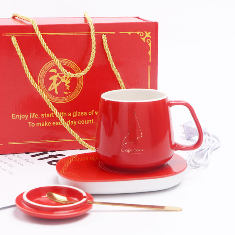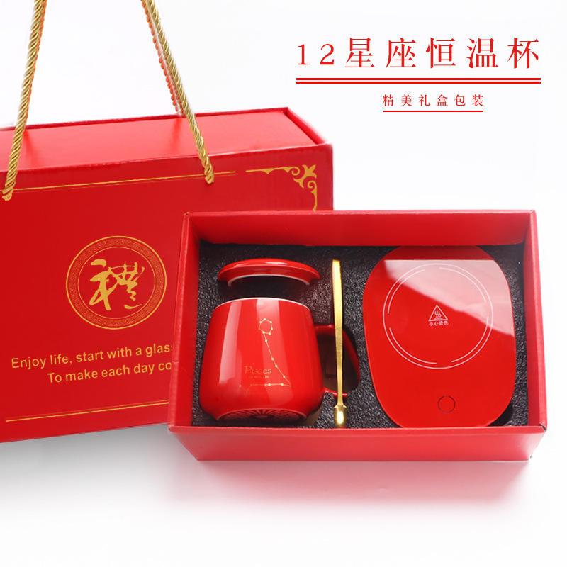 Smart Constant Temperature Mug Aquarius Constellation Ceramic Cup With Lid And Spoon 55 Degree Warming Gift Set