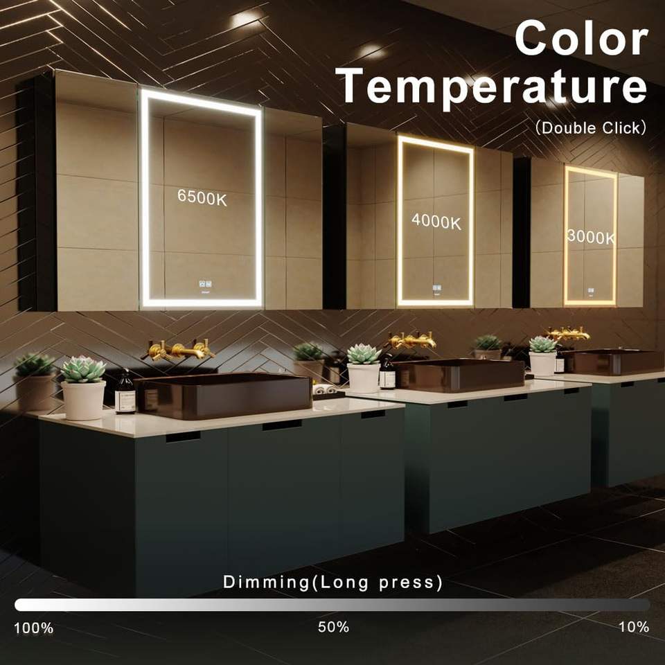 Smart LED Illuminated Bathroom Medicine Cabinet with Anti-Fog Function, Wall Mounted Double-Door Lighted Mirror Storage Cabinet