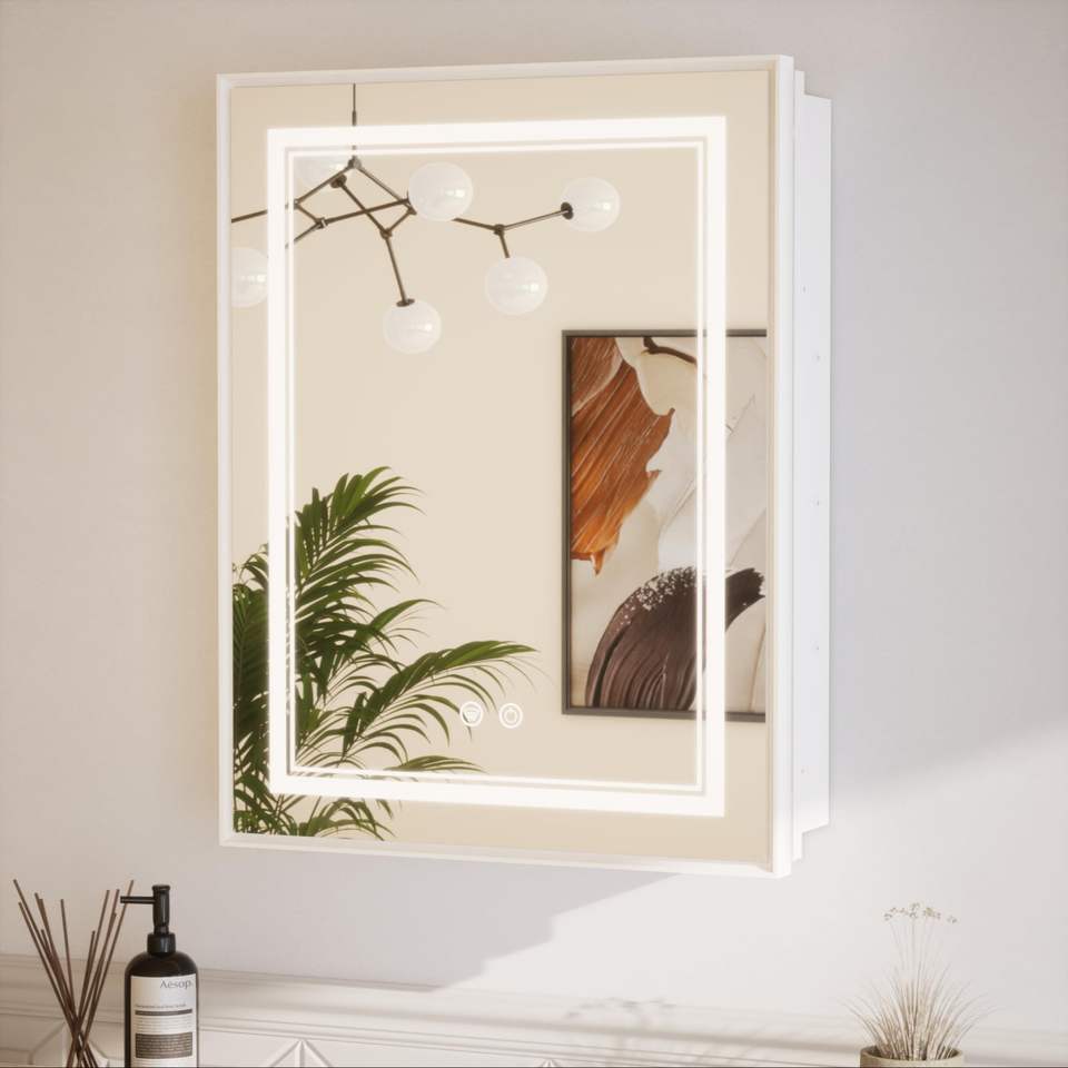 Smart LED Illuminated Bathroom Medicine Cabinet with Touch Control, Wall Mounted Mirror Storage Cabinet