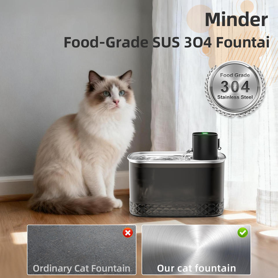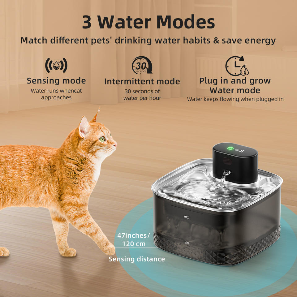 Smart Rechargeable Pet Water Fountain For Cats And Dogs Transparent Black Trough With Blue Filter Cotton WF310