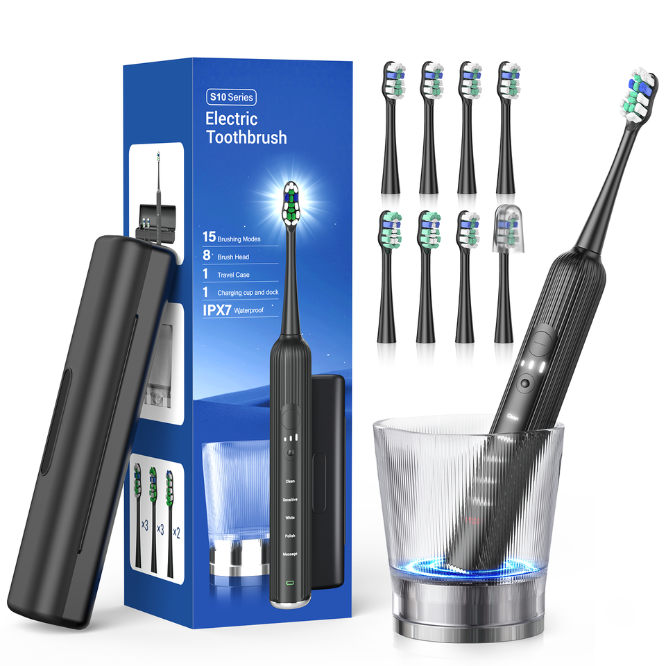 Smart Rechargeable Sonic Electric Toothbrush Teeth Whitening Adults 8 Brush Heads Medium Bristle IPX7 Waterproof Wireless