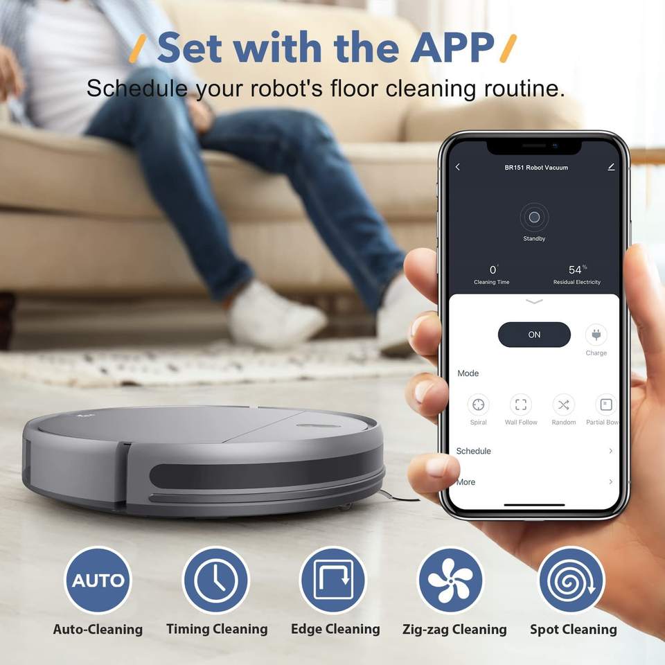 Auto-Recharge, Eco-Friendly, Edge Cleaning, Pet Hair Pick Up, Room-By-Room Navigation, Scheduling
