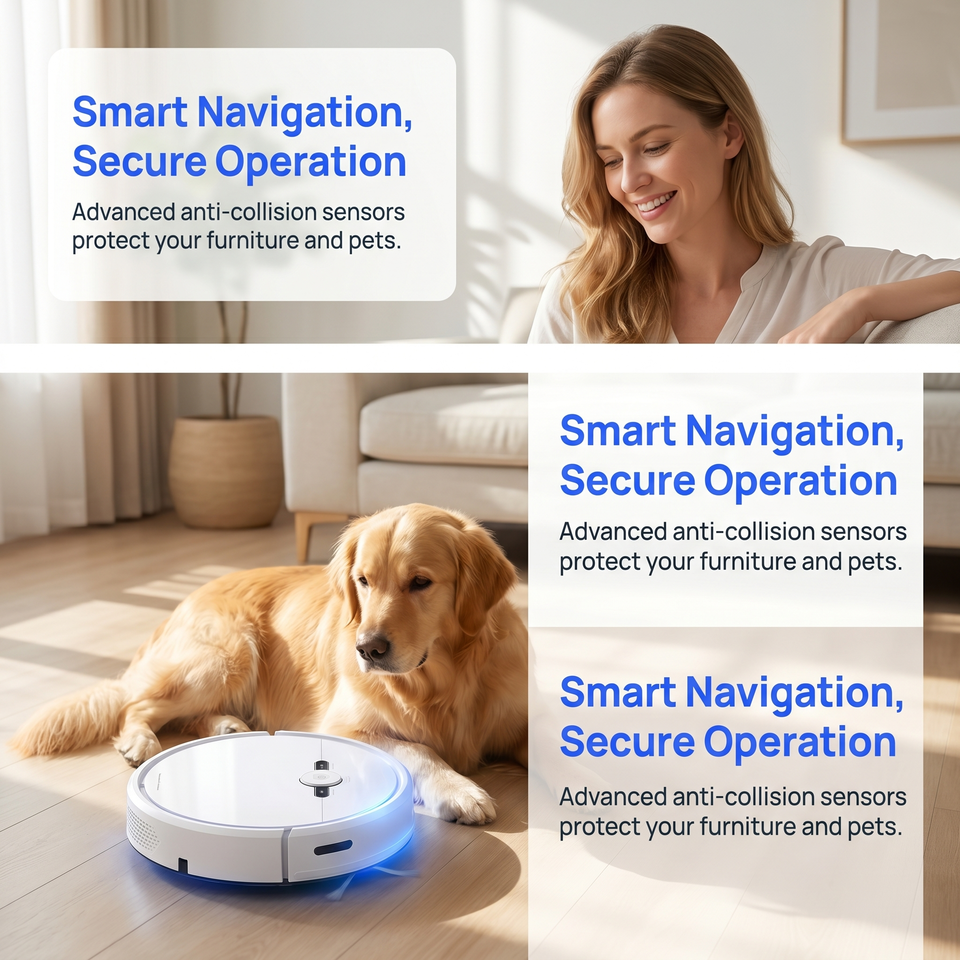 Smart Robot Vacuum Cleaner, Auto Sweep Vacuum Mop Combo, Anti-Collision Household Floor Cleaning Robot for Hardwood & Carpet