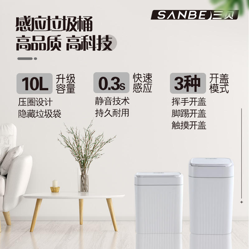 Smart Sensor Trash Can Rectangular Battery Operated Lid For Living Room Kitchen Bathroom Bedroom Large Capacity Upright Bin