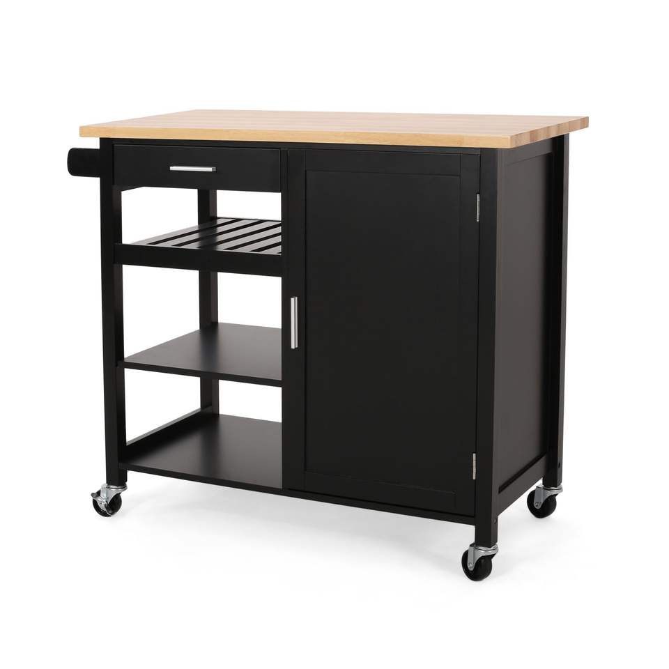 Smart Storage Organization Rolling Kitchen Island Cart Solid Wood Top Mobile Kitchen Table Spice Towel Rack Portable Islands